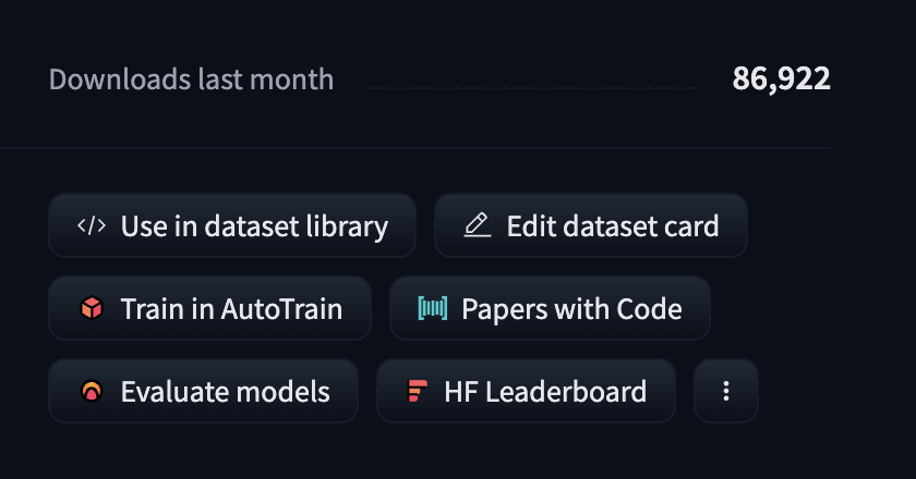 If a dataset on the Hub is tied to a supported library, loading the dataset can be done in just a few lines. For information on accessing the dataset, you can click on the “Use this dataset” button on the dataset page to see how to do so. For example, samsum shows how to do so with datasets below.