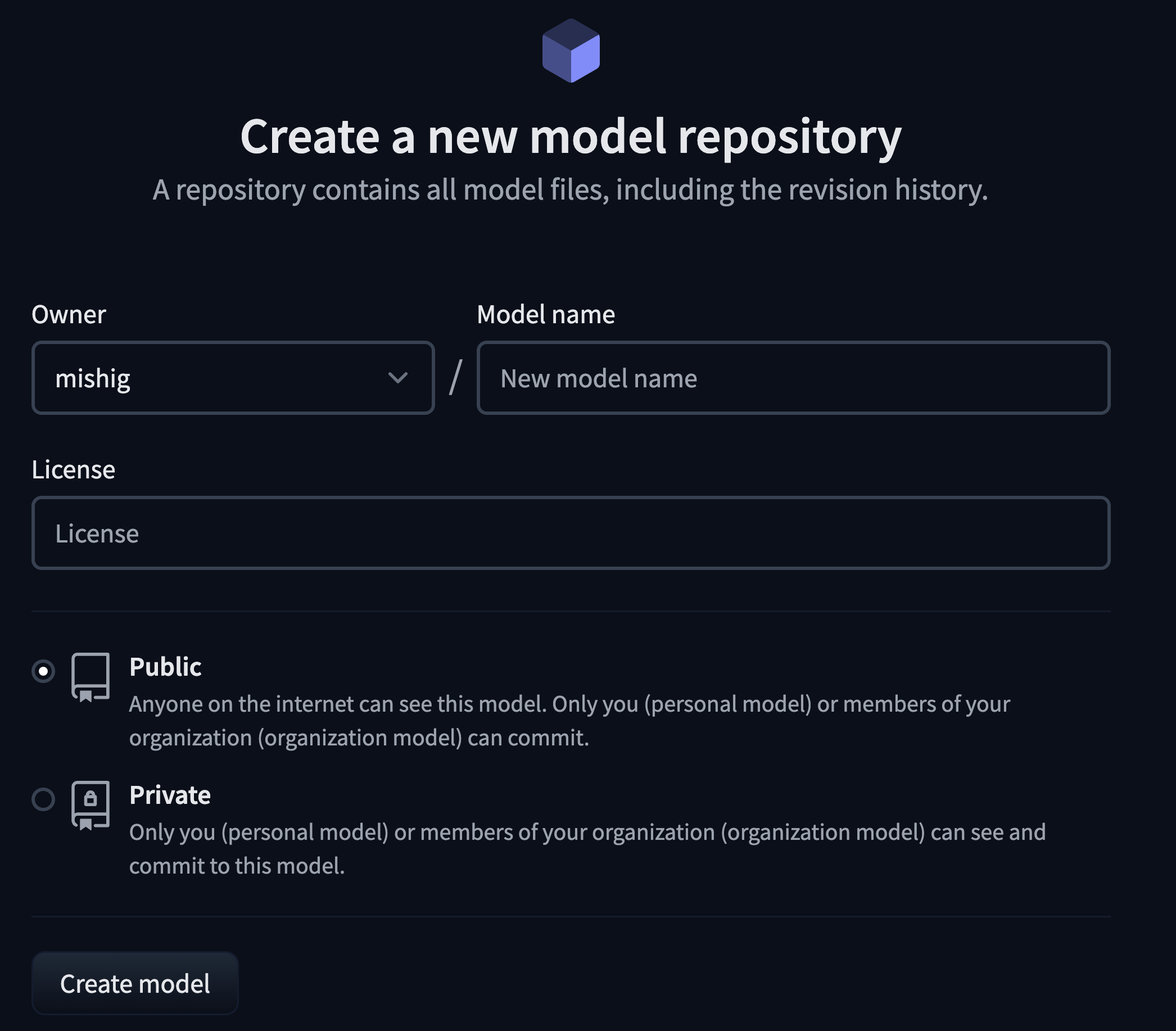 cd <your-model-name>You’ll need to add your SSH public key to your user settings to push changes or access private repositories.
