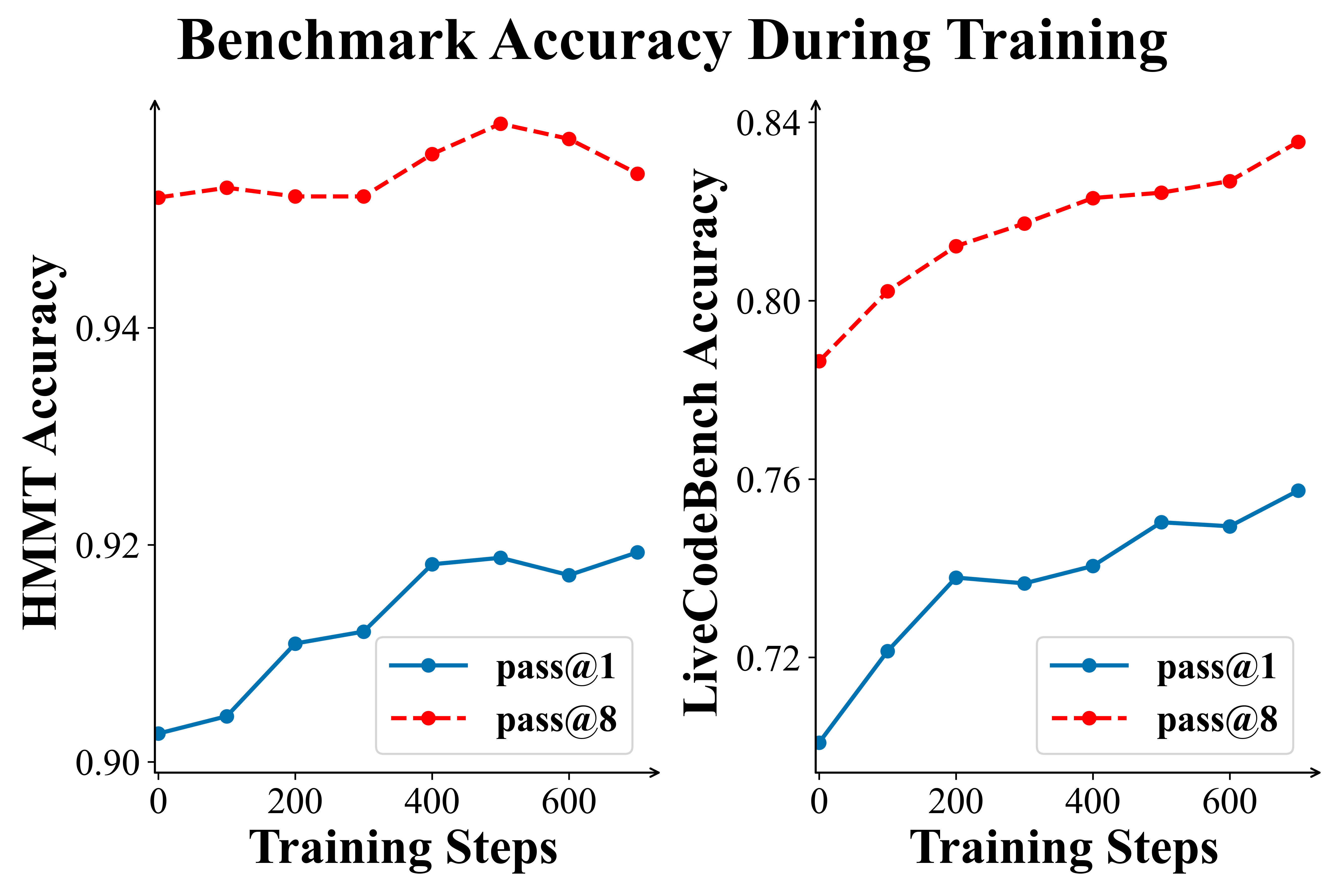 - RLVR-8B-0926: The initial checkpoint of our study, conducted strong reasoning-oriented post-trained on Qwen3-8B-Base.